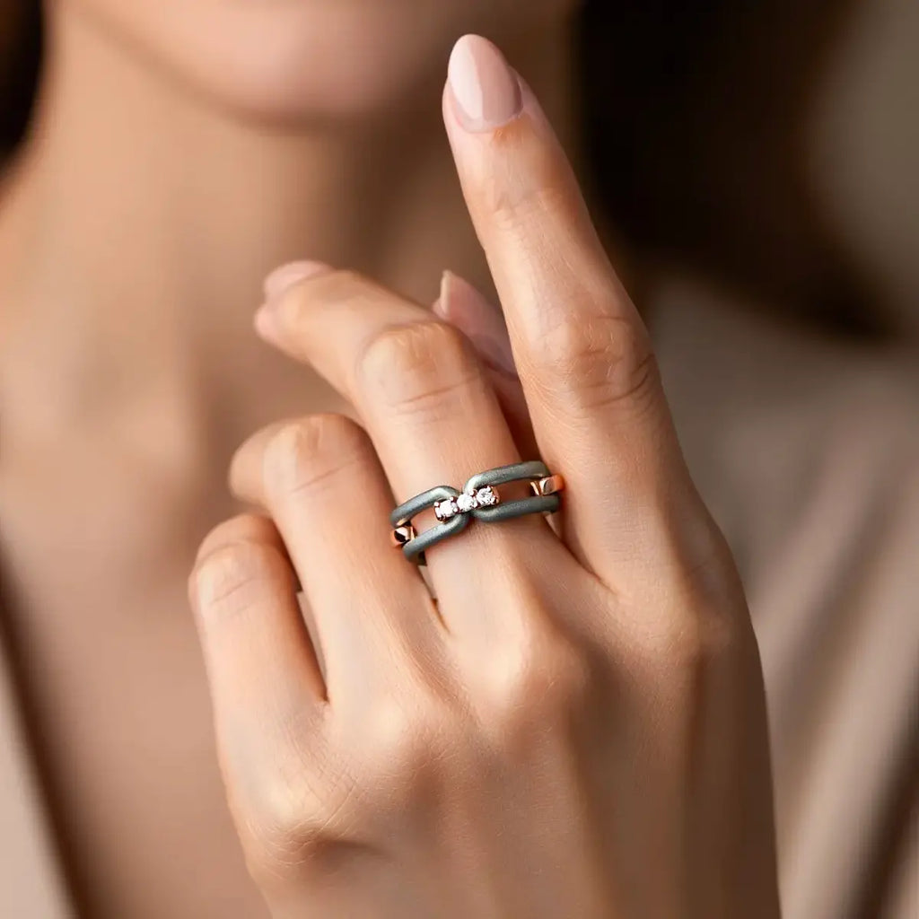 Anello Link in Oro Rosa Titanio e Diamanti