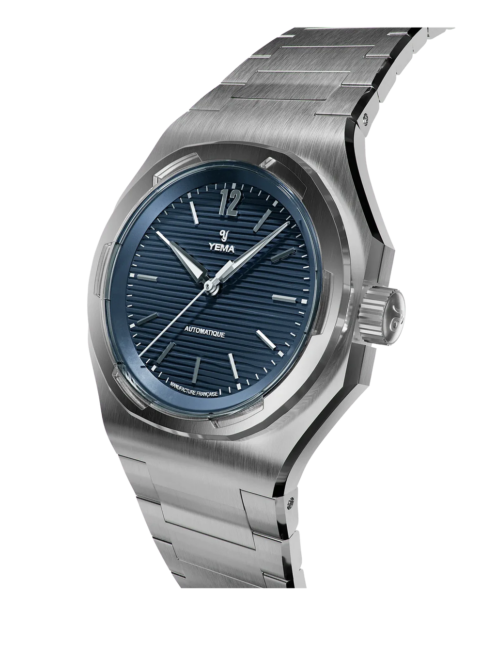 L’iconico modello YEMA con bracciale integrato torna in una versione più sottile, equipaggiato con il calibro di manifattura micro-rotor CMM.20, visibile attraverso il fondello in zaffiro. Con una cassa ottagonale asimmetrica da 39 mm e un quadrante a strisce ispirato a pattern naturali, questo elegante orologio sportivo è perfetto per un uso quotidiano, unendo modernità e comfort senza compromessi.