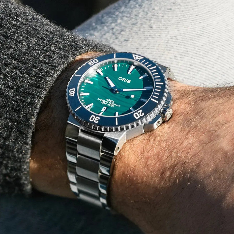 Questa edizione limitata a 1249 esemplari cattura l'anima del grande fiume cinese attraverso un quadrante in madreperla blu-verde che riflette la luce come le acque in movimento. Il motivo a onde, ottenuto con un innovativo processo di stampa su questo materiale prezioso e delicato, si ispira agli echi ultrasonici dei delfini che abitano il fiume, testimoniando l'impegno di Oris per la conservazione marina. La collezione Aquis incontra l'arte orologiera svizzera in un segnatempo esclusivo che celebra la biodiversità acquatica con raffinatezza tecnica ed estetica, accompagnato da confezione originale e garanzia ufficiale biennale.