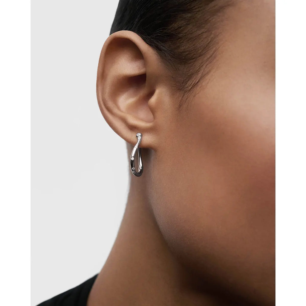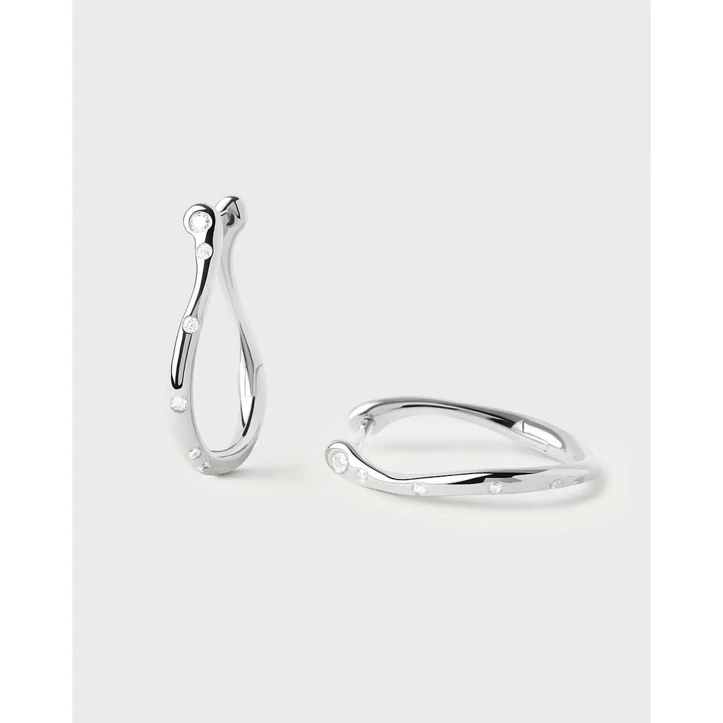 L'eleganza si fa essenziale con gli orecchini Air di Pd Paola, mini cerchi in argento con placcatura al rodio che catturano la luce attraverso zirconi bianchi trasparenti. Il design raffinato, con un'altezza di 21,7 mm e uno spessore di appena 1,6 mm, bilancia presenza e leggerezza per un peso totale di soli 3,25 grammi. La finitura rodiata conferisce una brillantezza durevole e protegge il prezioso argento, mentre le pietre incastonate creano un gioco di riflessi che impreziosisce ogni movimento. Perfetti per valorizzare il look quotidiano o aggiungere un tocco luminoso a occasioni speciali, questi orecchini incarnano lo spirito contemporaneo del marchio spagnolo. Un gioiello versatile che unisce stile minimalista e ricerca estetica, garantito dalla qualità Pd Paola con garanzia ufficiale di 2 anni.