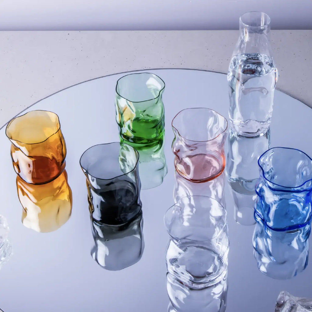 Dal fuoco della fornace veneziana nascono le forme cristalline di On the Rocks: bicchieri Venini che trasformano ogni momento conviviale in un'esperienza sensoriale. Realizzati con la tecnica del vetro soffiato, questi sei esemplari multicolor del 2025 catturano la luce in superfici organiche che ricordano il ghiaccio naturale. Ogni pezzo, alto 10 cm con diametro di 9,5 cm, è irripetibile: le tonalità vivaci e le linee libere riflettono la maestria artigiana che rende unico ogni sorso. Perfetti per aperitivi raffinati o cene eleganti, custodiscono l'eredità vetraria di Murano nella confezione originale con garanzia ufficiale biennale.